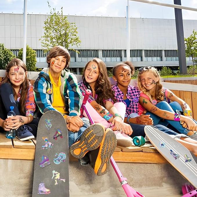 - 【Package Include】:Roller skate party favors includes 12pcs roller skate slap bracelets,50pcs roller skate stickers,12pcs roller skate paw keychains, 12pcs roller skate badges ,12 sheet of roller skate temporary tattoos (over 144 patterns), 12pcs gift bags with sealing stickers. Enough quantity to meet your party needs!