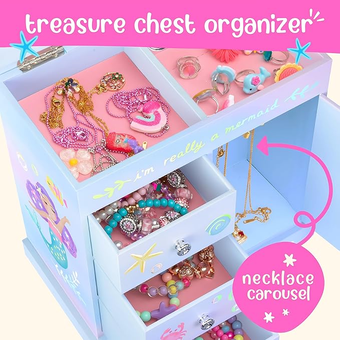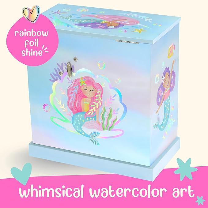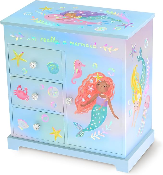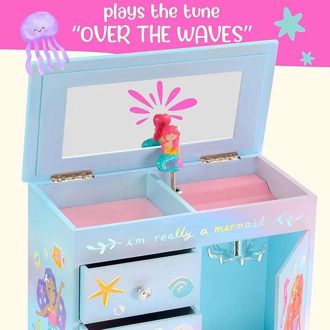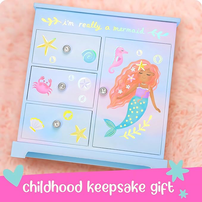 - Mermaid Jewelry Box - Igniting awe & wonder in imaginative hearts, this ‘I'm Really a Mermaid’ musical jewelry box for girls brings radiant smiles to every little girl. Watch as she becomes immersed in the soothing melody of Over the Waves