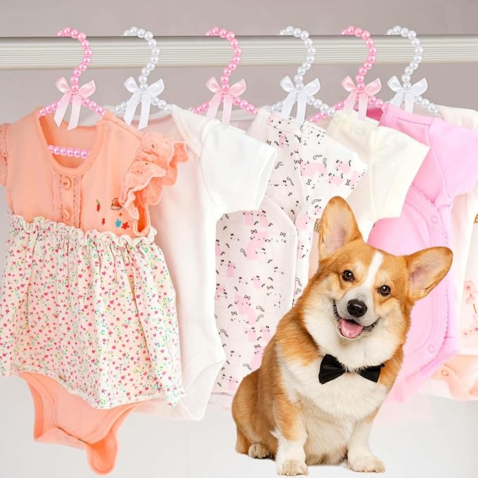 Wesiti 25 Pcs Small Pearl Hanger Mini Pearl Metal Elegant Clothes Hangers with Ribbon for Women Dog Cat (Pink,White)