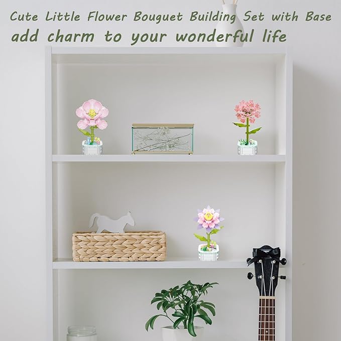 - Embellish Life: Keep the ephemeral of flower is Blooming. Simple flower bouquet building set can bring you a happy mood. Relieve eye fatigue and stress, bring good meanings and decorate life