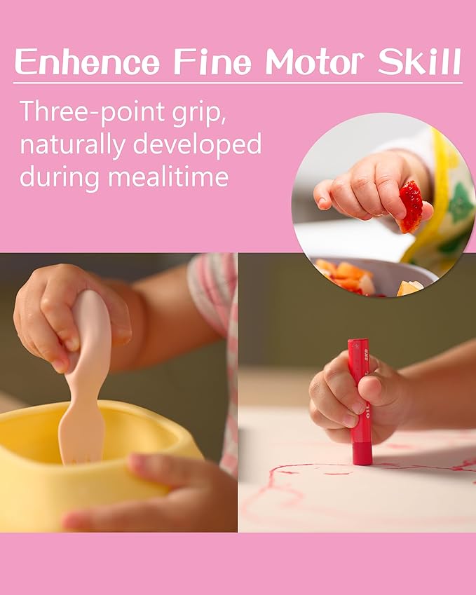 - ENHANCES FINE MOTOR SKILLS DEVELOPMENT: Promoting the development of fine motor skills through mealtime helps transition from a pincer grasp to a three-finger pencil grip. This is also very helpful for their future learning in activities such as writing and drawing