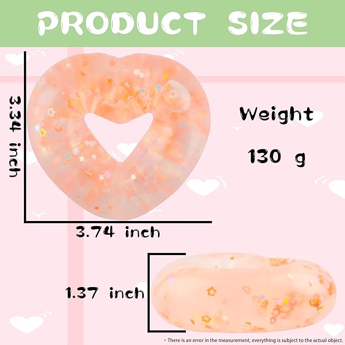 Wearable Squishy Stress Relief Toy, Glitter Heart Stress Relief Toy,Crystal Glitter Bracelet Soft Sensory Fidget Toys,Kids Party Favors,Classroom Rewards,Goody Bag Stuffer (Pink)