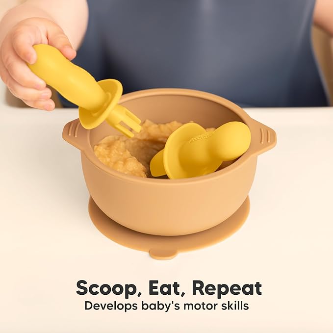 - Safer Silicone - Our 4-pack KeaBabies Lil' Prep Silicone Baby Spoon and Fork Set is made with 100% pure food-grade, BPA-free premium soft silicone. The sturdy and durable construction is crafted for infant teething gums & perfect for baby first food.