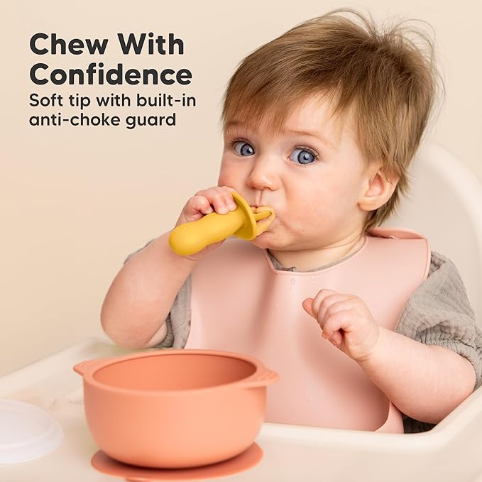 - Baby-Safe Design - Crafted for tiny hands, these baby food utensils are suitable for infants 6-18 months. The built-in anti-choke barrier & ergonomic grip handle allow your baby to explore new foods safely, perfect for the first stage BLW.
