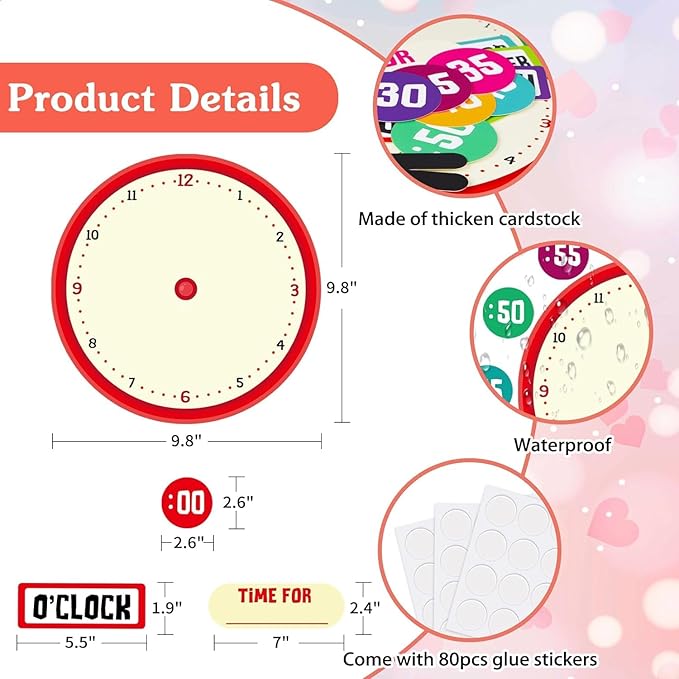 - 【Versatile Applications】: These learning clock cutouts are not only educational tools but also serve as attractive classroom decorations. The telling time teaching clock can be used on bulletin boards, chalkboards, or walls, which can capture students' attention and enhance their learning experience.