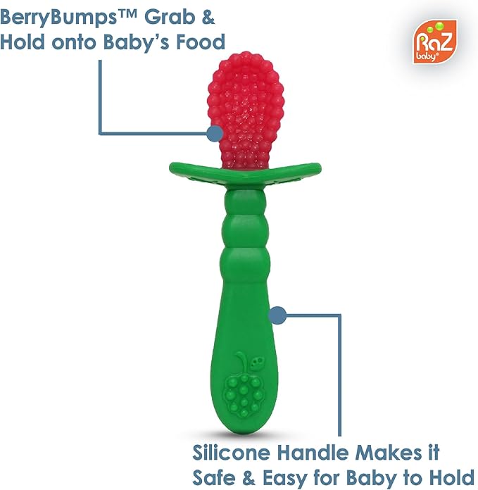 - BABY’S FIRST SPOON: BerryBumps hold onto food to help baby’s develop self-feeding skills with ease, confidence, and less mess.