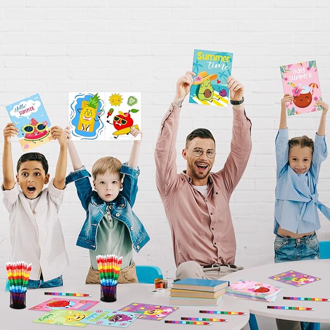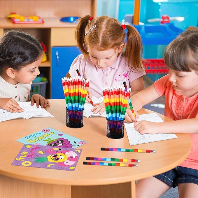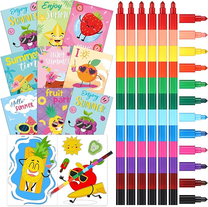 - Nice Gift Choices: this pool coloring books with stackable crayons set is the nice addition to any summer themed party or event; Whether you're hosting a summer party, looking for a rainy day activity, or just want to keep the children busy, these summer fruit coloring books are the nice solution; Watch as your little artists proudly display their colorful creations or use them as handmade gifts for friends and family; Spark creativity and imagination with this fun and engaging coloring set