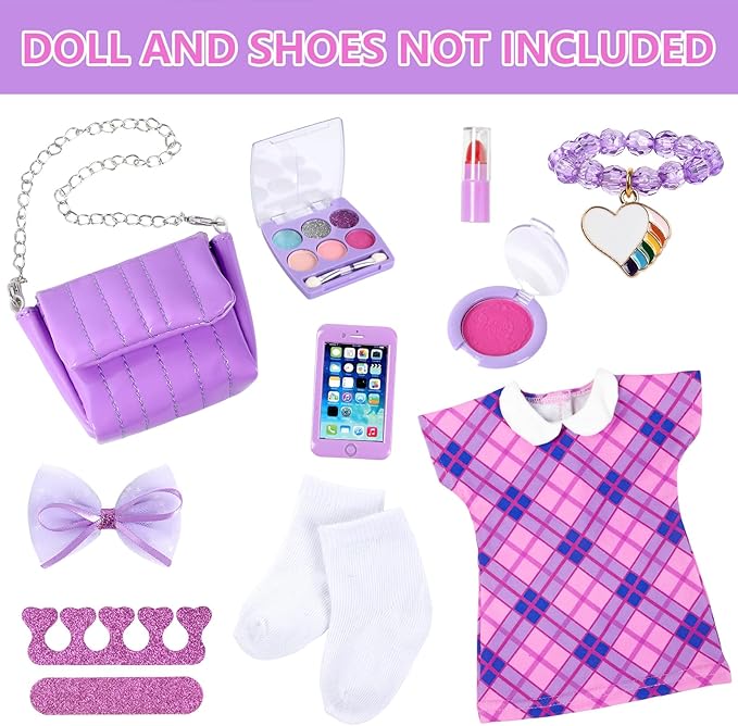 - IDEAL GIFT: Our 18 Inch Doll Accessory Dress with Makeup Set is perfect for Christmas, birthday and other gifts for kids or grandchildren. By purchasing, you can improve your child's thinking skills, add to their life experience and keep them entertained.