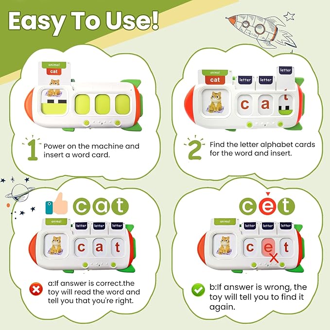 - Spelling Sight Words Flash Cards: spelling & talking alphabet flash cards and sight word flashcards.This cvc word learning card set utilizes "CVC word spelling games" to assist children in learning and consolidating CVC words.These talking cards adopt an interactive approach,making learning fun and Helping kids expand their vocabulary.