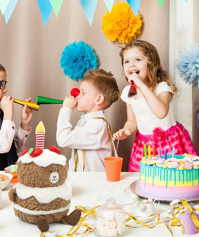 Birthday Plush Toy Bear Stuffed - Adorable Cake Stuffed Animal, Cute Teddy Bear Face with Candle, Huggable Kids' Gifts, Party Decorations, 13 Inch