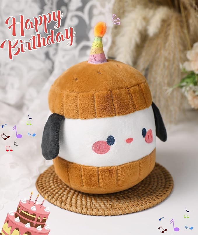 - Unique Design: Adorable dog plush toy design with a glowing candle on birthday cake plush's head makes the stuffed dog suitable for all ages, making it a perfect gift for birthdays, Valentine's Day, Christmas, and more