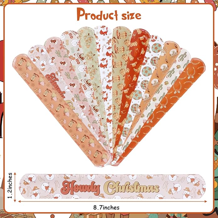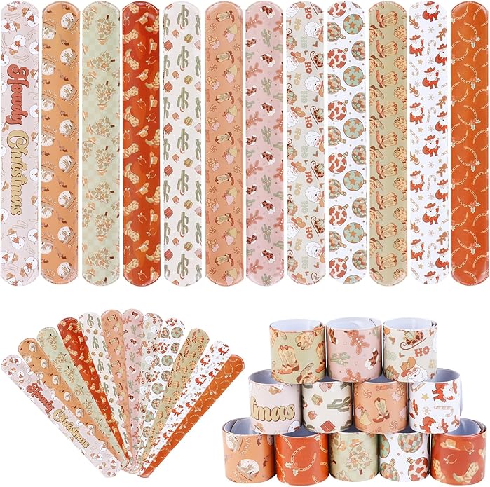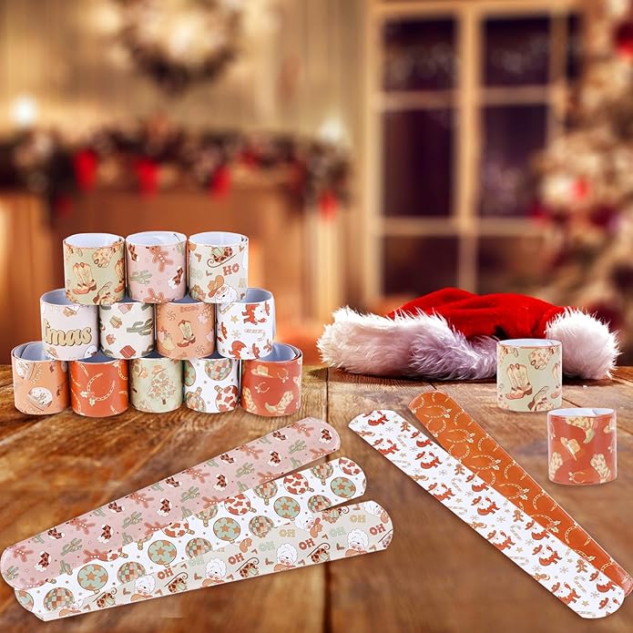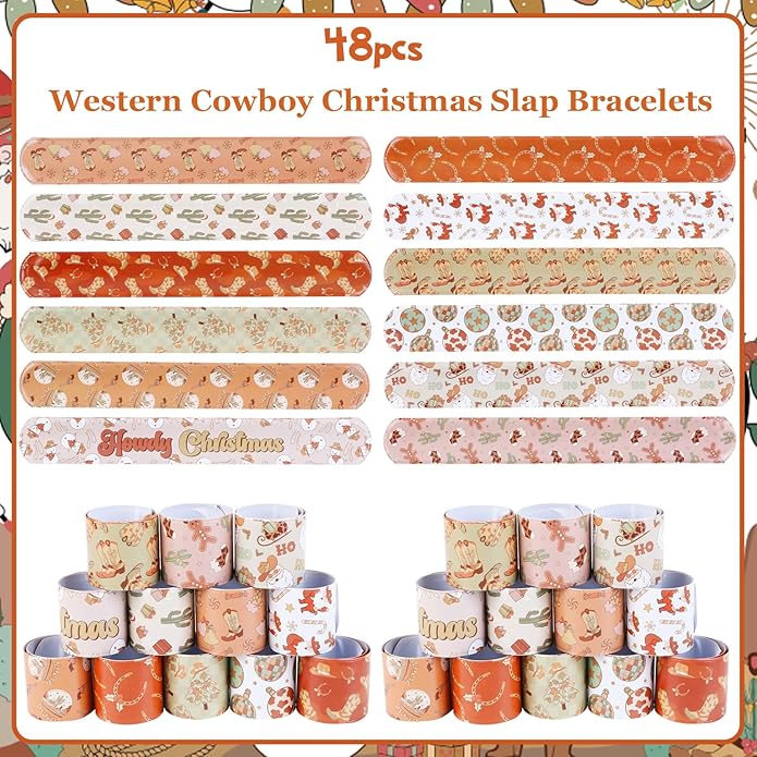 - Package Includes: 48pcs Western Cowboy Christmas Slap Bracelets, 12 different designs, 4 of each. Assorted styles and enough quantity, it's a perfect gift for Christmas toys stocking stuffers gift for people make them have a deep impression on Western Christmas Day
