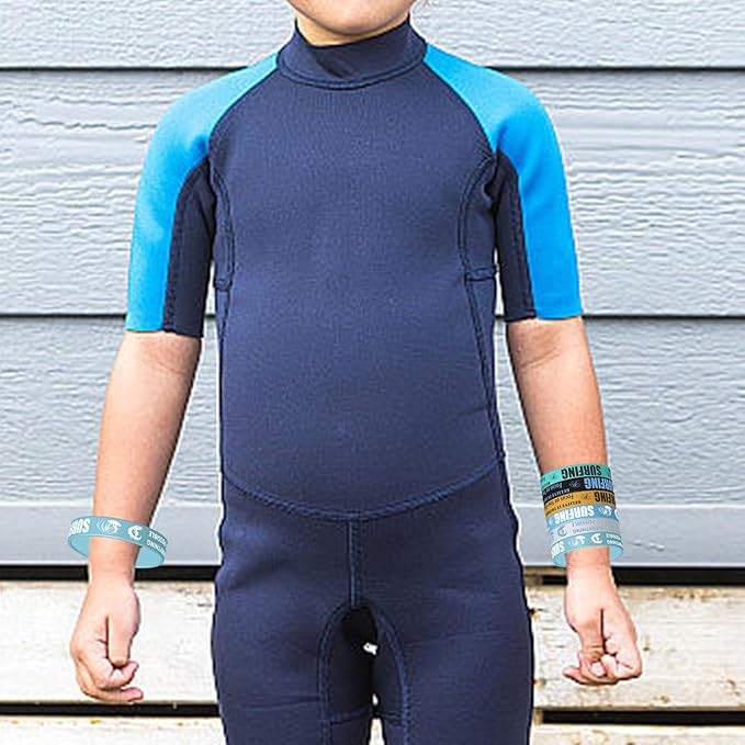- Package contain - 48 packs of rubber bracelets are printed with text of "SURFING" and image of Surfing.