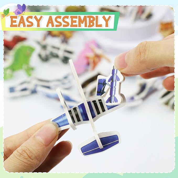 - Easy Assembly: 3D puzzles are straightforward to make. Simply remove the pieces from the template and fit them snugly into the slots. The 3D puzzle set is a mixed pack featuring puzzles with four themes: animals, insects, military, and dinosaurs.Each puzzle varies in complexity, offering challenges suitable for different skill levels