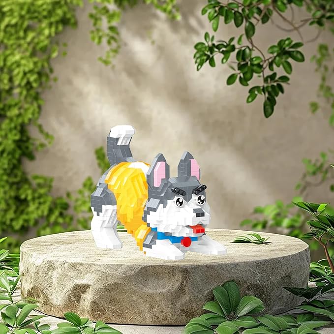 Cute Animal Building Blocks, Pet Micro Mini Building Blocks for Adults and Kids Age 6+ Gift Toy 952 Pcs (Yellow Husky)