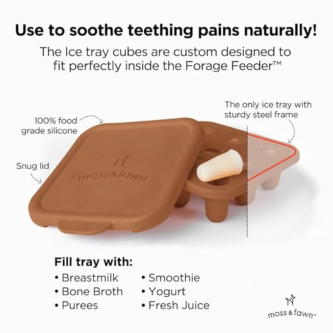 - SOOTHING TEETHING RELIEF AND FLAVOR EXPLORATION: Accompanying the feeding mold is the Forage Feeder, a soothing silicone frozen baby food teething toy, pacifier fruit feeder, and teether designed to alleviate teething discomfort while introducing new tastes and textures. Compile grocery lists and explore exciting flavor inspirations with ease.