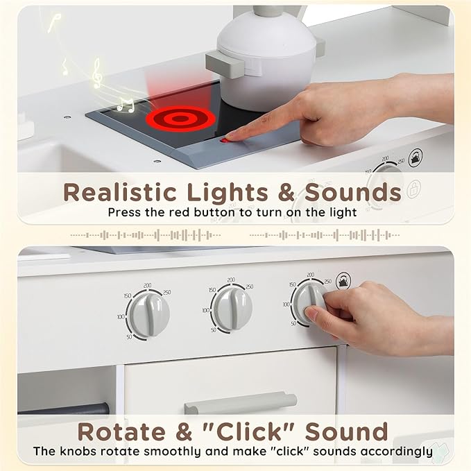 - High-Quality Construction: Crafted from premium, durable wood, this play kitchen set is built to withstand hours of imaginative play, ensuring long-lasting fun for your little chef.