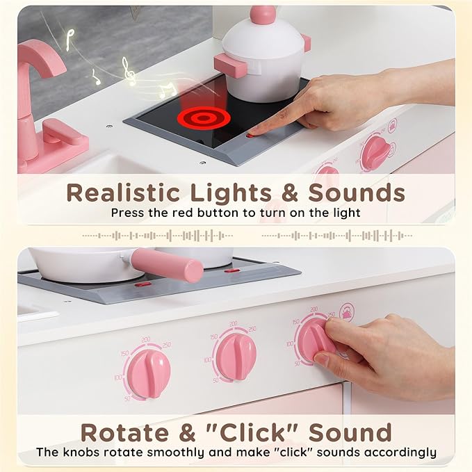 - High-Quality Construction: Crafted from premium, durable wood, this play kitchen set is built to withstand hours of imaginative play, ensuring long-lasting fun for your little chef.