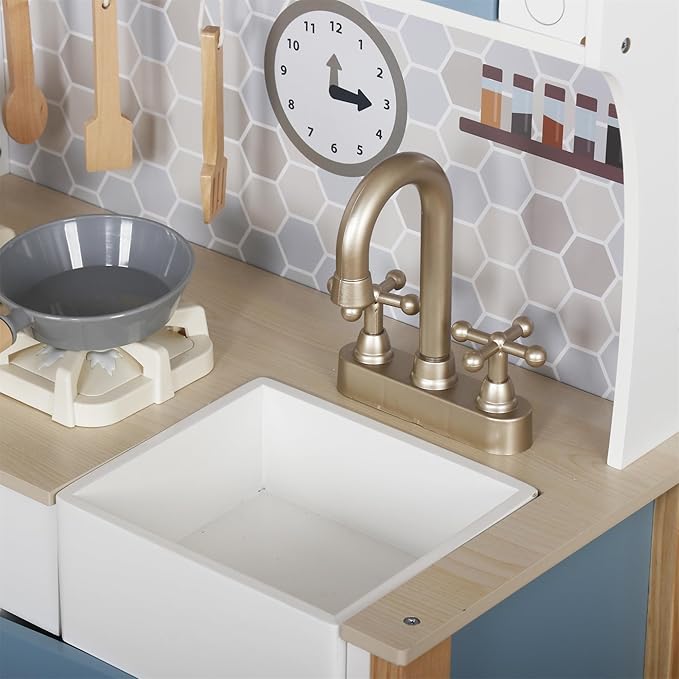 • 🎁Geat gift- Not only provides fun playtime for young children, but is also important for education. The perfect play kitchen for 3-8 year olds is ideal for creative role play toy and the perfect gift for kids.