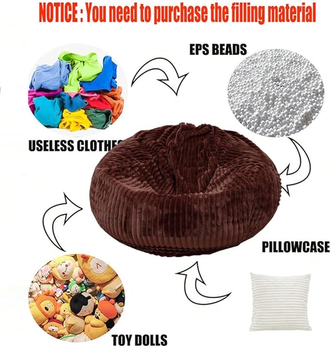 Soft Bean Bag Chair Cover No Filler Sofa Cover Storage Bean Bag Cover Organizing Children Plush Toys (Coffee, X-Large)