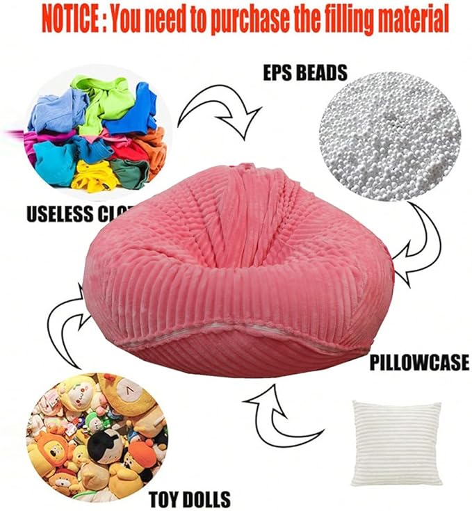 Soft Bean Bag Chair Cover No Filler Sofa Cover Storage Bean Bag Cover Organizing Children Plush Toys (Pink, X-Large)