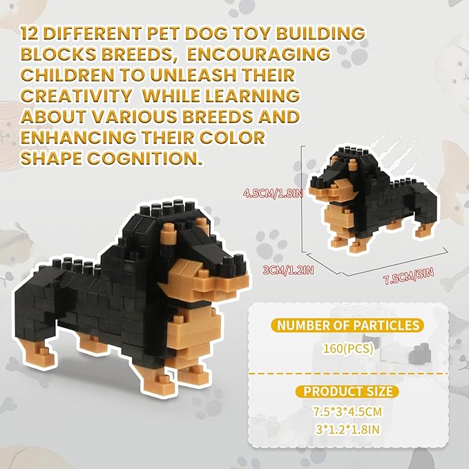 - Educational & Engaging: Pet dog toy building blocks set features 12 different dog breeds, encouraging children to unleash their creativity while learning about various breeds and enhancing their color shape cognition.