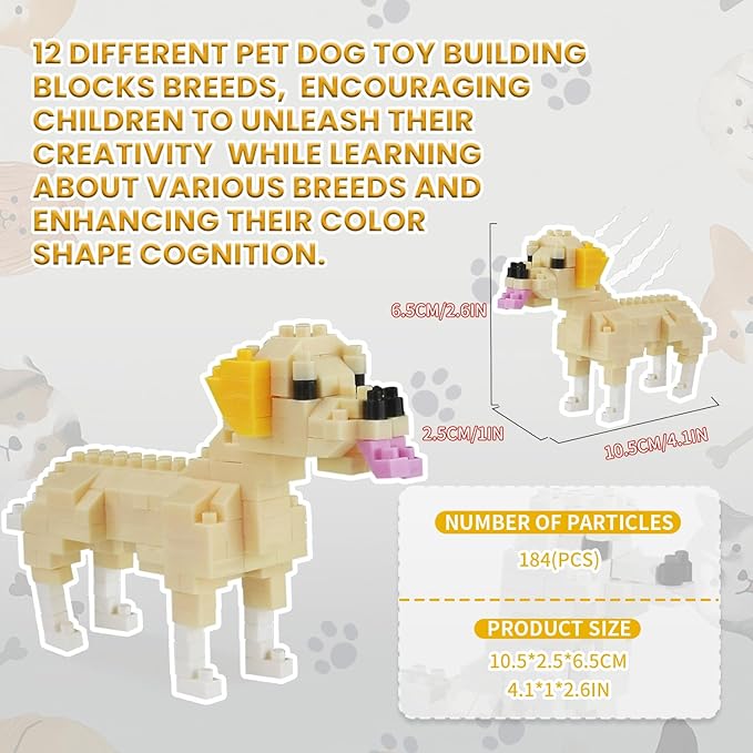 - Educational & Engaging: Pet dog toy building blocks set features 12 different dog breeds, encouraging children to unleash their creativity while learning about various breeds and enhancing their color shape cognition.