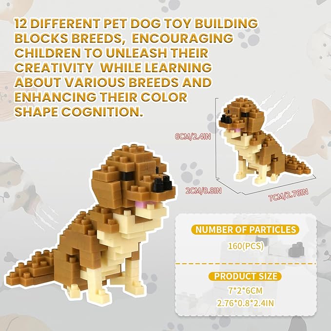 - Educational & Engaging: Pet dog toy building blocks set features 12 different dog breeds, encouraging children to unleash their creativity while learning about various breeds and enhancing their color shape cognition.