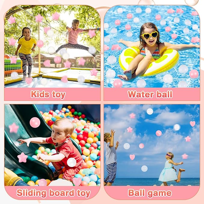 - Funny Party Accessories: embellish your child's birthday party or other special occasions with these star, round and heart shaped ball pool balls; They're suitable for filling up pits, tents, playhouses, kiddie pools, playpens, and bouncy houses; Create an unforgettable event filled with laughter and joy