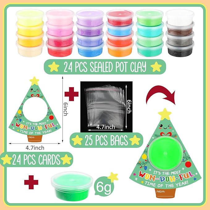 - Release of Creativity: immerse your child in creativity and with our modeling clay kit, it includes 24 vibrant colored clays, suitable for molding and creating, it's a way to celebrate the festive season and makes ideal Christmas party favors for kids