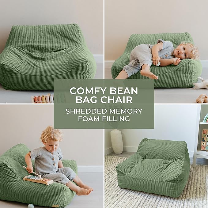 - Trendy Kids Chair - Complements Any Interior Décor: Your kids (recommended: 18+ months) will love the giant kids chair bean bag style - and so will you! Sage green colored it seamlessly blends with your home’s decor and is a great pick for living rooms, kids’ rooms & playrooms