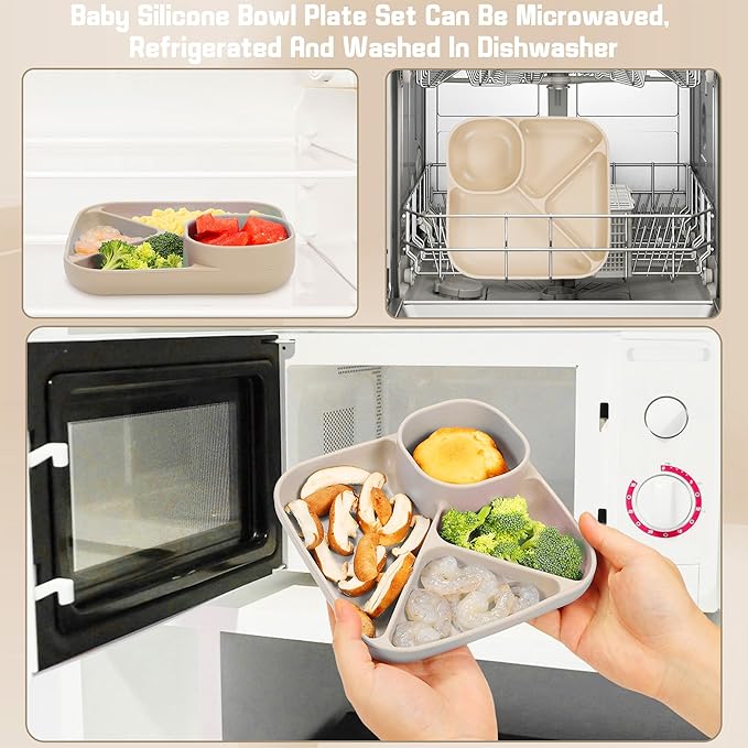 - Manage Baby Dish Set: The plate have suction points at their bases to help them stay secure on top of high chair trays, tables, and countertops. Effectively preventing your baby from throwing or tipping over the plate & bowl and making a mess