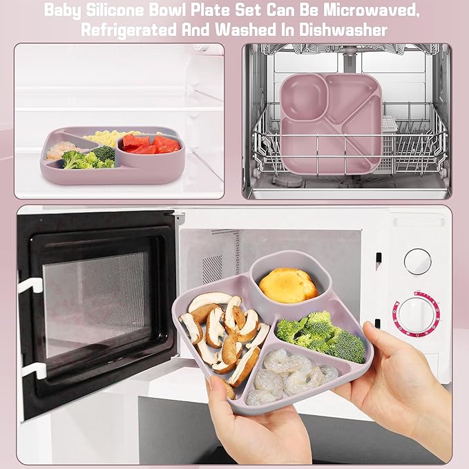 • Manage Baby Dish Set: The plate have suction points at their bases to help them stay secure on top of high chair trays, tables, and countertops. Effectively preventing your baby from throwing or tipping over the plate & bowl and making a mess