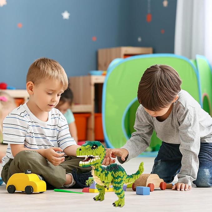 Dinosaur Tyrannosaurus Rex Building Blocks Velociraptor Model Decor Micro Mini Blocks Toy Birthday for Age 6+ Children Adults Teens 1457 Pieces