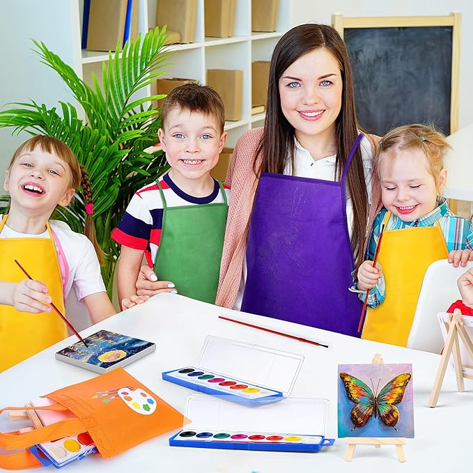 • Package includes: you will receive a mini watercolor paint set including 12 picture frames with easels, 12 long strip boxes of palette, 12 painting aprons and 12 canvas tote bags, 48 pieces in total; the sufficient quantity can meet your painting and learning needs