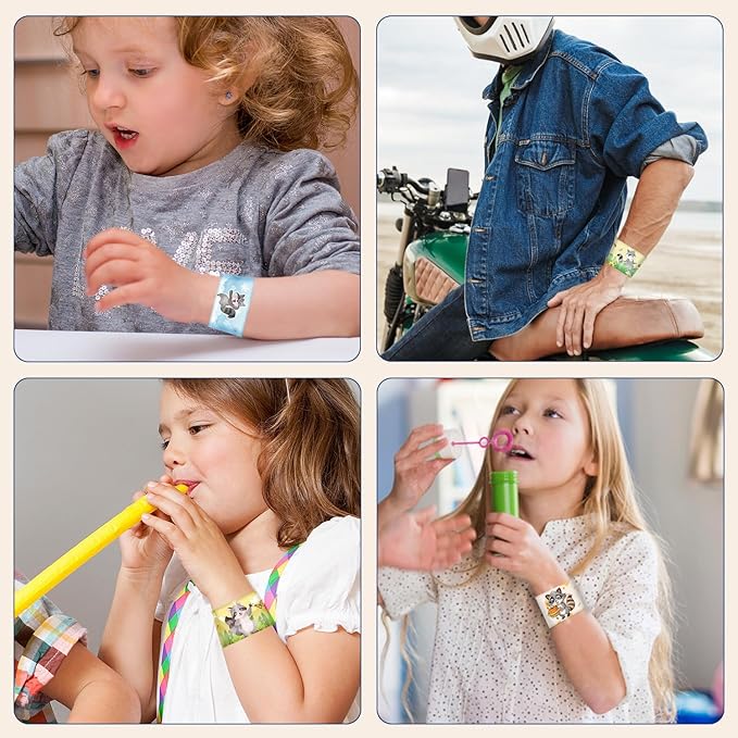 - Reliable Material: These cute raccoon slap bracelets are made of premium PVC, last long, and they have no odor, no harm for your kids.The edge of the plastic jacket is completely sealed