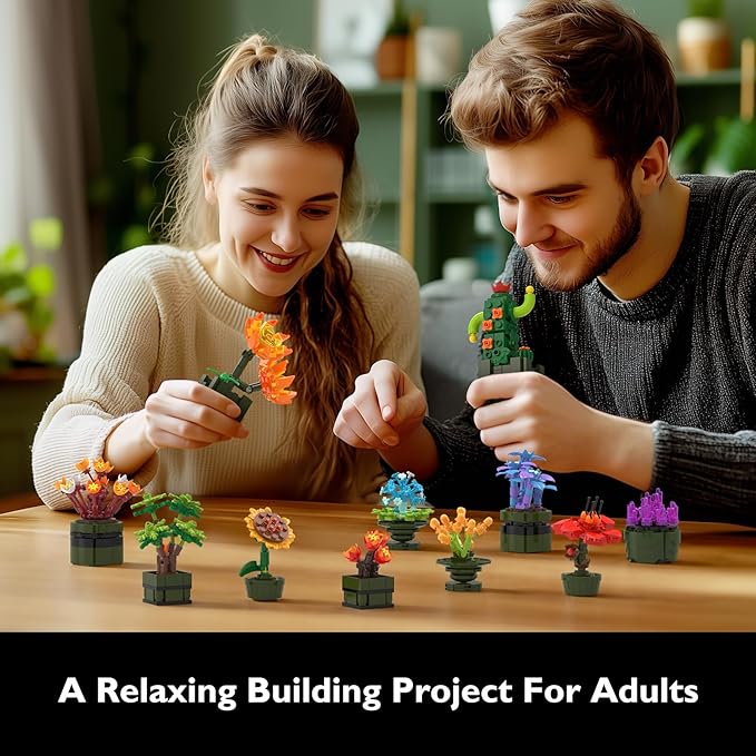 • EASY ASSEMBLY, ENDLESS FUN: Enjoy a stress-free building experience with our succulents set. With engaging pieces and straightforward instructions suitable for both adults and kids 8 9 10 11 12+, it offers endless fun and creativity, making every building session enjoyable