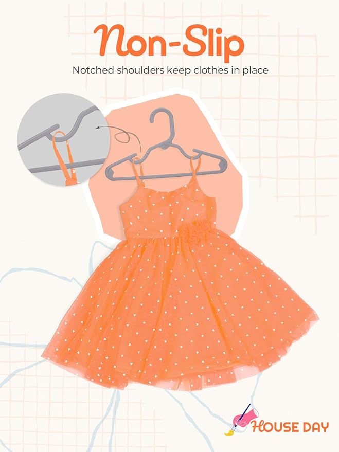 HOUSE DAY Kids Plastic Hangers for Closet, Childrens Hangers for Clothes & Baby Hangers, Toddler, and Child Clothes - Clothing, Pants, Coats, and More - Ideal for Everyday Use (Grey, 120 Pack)