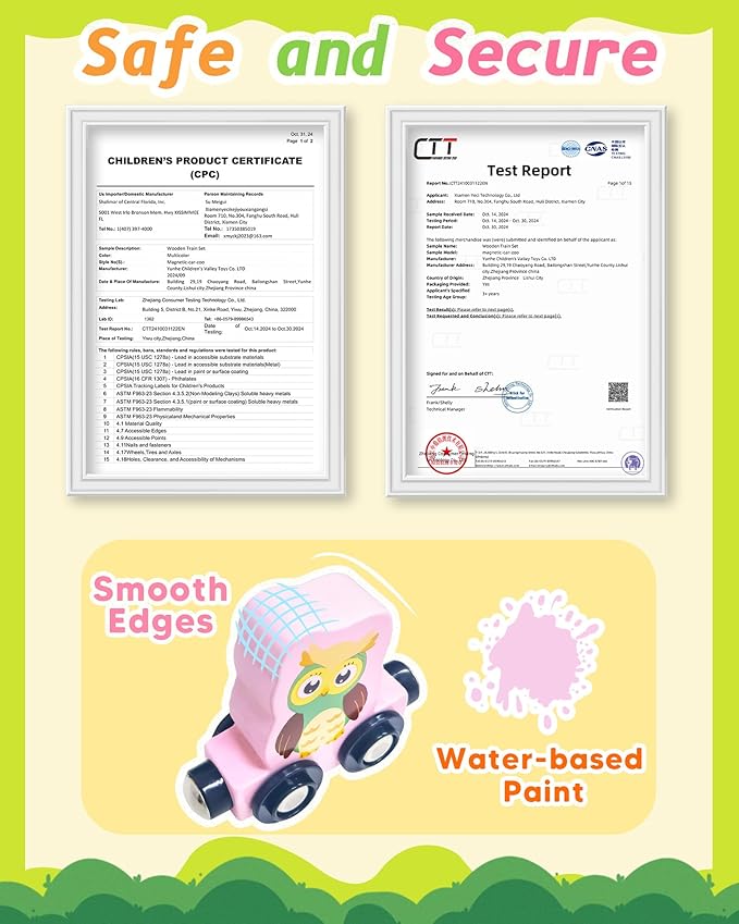- SAFE AND WELL-MADE: Made with high quality, non-toxic wood materail and water-based paint, this learning toys can last for years. The storage bag provided is easy to collect store and carry after playing. The edges of wooden train cars are smooth , it keeps your 1 2 3 years old plus boys and girls play safely.