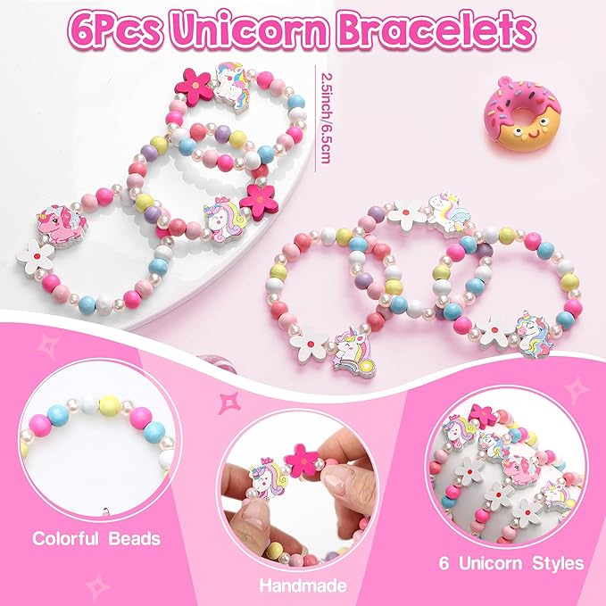 - Reliable Material - All our products are carefully selected. The glittering rainbow unicorn wings are made of fabric, which is durable and makes the fairy's wings more three-dimensional. Made of quality materials, this headband comes in one size fits all and can be easily worn for hours. All bracelets are handmade from natural wood beads and painted in different colors, very beautiful. Lightweight makes the bracelet easy to wear