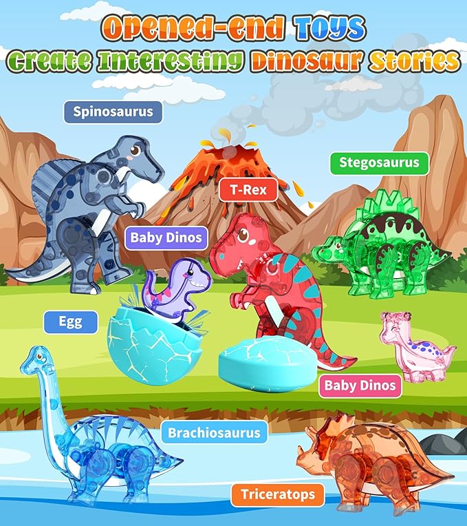 - Strong Magnet and Sturdy Plastic: Ensuring hours upon hours of safe and secure playtime for your children. Let go of worries about pieces not staying together or breaking easily β with these sturdy materials, your child can build, dismantle, and rebuild their dino world with ease.