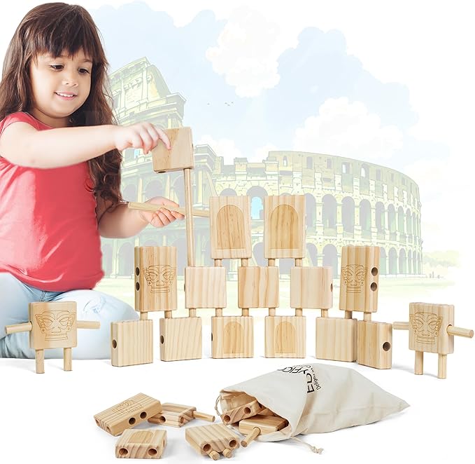 - BUILDING BLOCKS FOR TODDLERS 1-3 - These toddler blocks are designed around the theme of ancient architectural structures and feature adorable masked figures. Parents and children can use clever techniques inspired by ancient Roman engineering to construct ancient buildings and explore rolling and sliding transportation methods. Compared to typical stacking toys for toddlers aged 1-3, these blocks offer a higher level of creative play, enhancing hand-eye coordination and spatial imagination