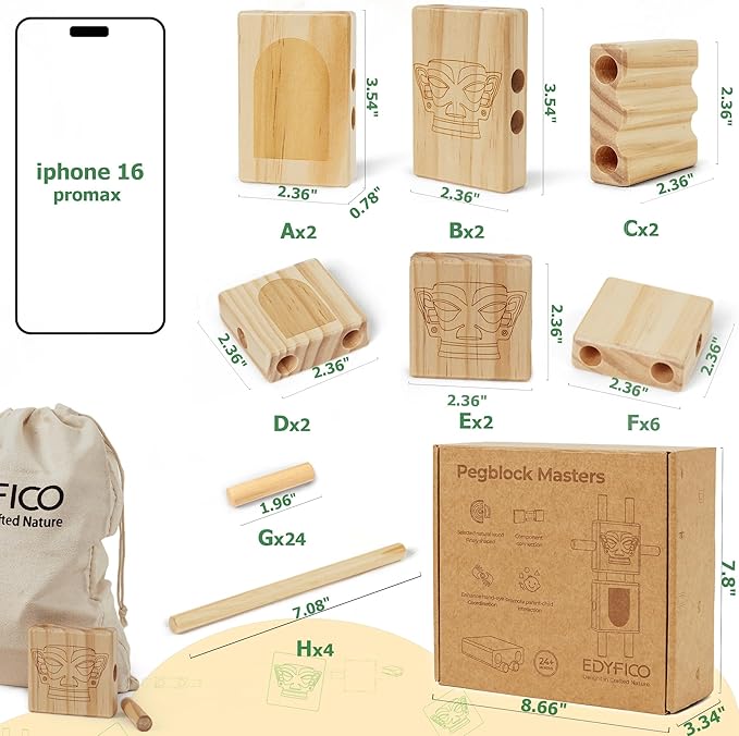 - SMOOTH ROUND EDGE DESIGN - These wooden blocks are smooth and rounded, providing a safe and warm touch. Each piece is 0.78 inches thick, just right for little hands to grasp and explore! These stacking blocks contain 16 large solid wooden blocks, 28 round sticks, 1 canvas storage bag, and 1 instruction booklet. It's stacking blocks for toddlers and a lovely souvenir, too! Suitable for preschoolers and toddlers aged 12+ months, it's the ideal gift for any occasion with its premium packaging
