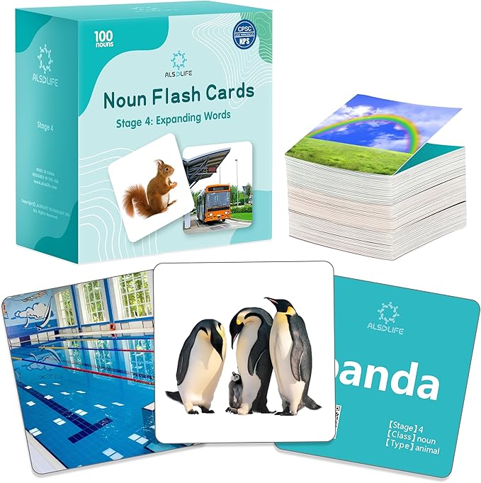 - 【Perfect for Developing Expanded Language Skills】ALSOLIFE 4th Stage Flash Cards feature 100 key words across categories like animals, body parts, people, locations, and natural phenomena. These cards help children progress from basic words to more complex terms, enhancing their ability to express thoughts and describe the world with greater detail.