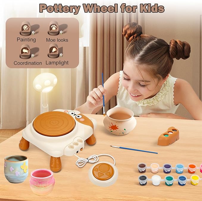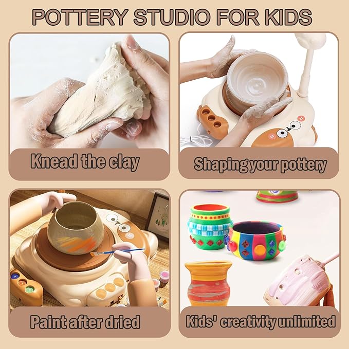 Pottery Wheel for Kids-Clay Sculpting Tools & Painting Kit,DIY Kits Clay Maker for Beginners with 3 Packs Modeling Clays,Birthday Gift for Kids Toys for Girls, Art&Crafts Kits for Kids Ages 8-12
