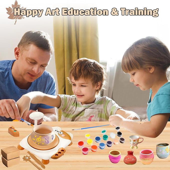 - 【Multifunctional Use】Whether at home, at school or in DIY studio, this children's pottery wheel has various functions and is very suitable for children aged 6 and above. This is not only an interesting hobby, but also an excellent tool to develop artistic skills and crafts. This children's pottery wheel suit is the perfect gift to stimulate creativity and imagination