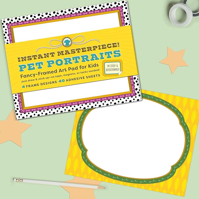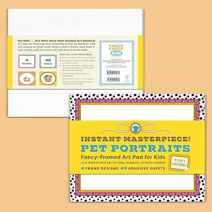Knock Knock Kids Instant Masterpiece! Pet Portraits Sticky Art Pad: Fancy-Framed Art Pad for Kids (40 Adhesive Sheets, 10 Each of 4 Styles), 10 x 8-Inches